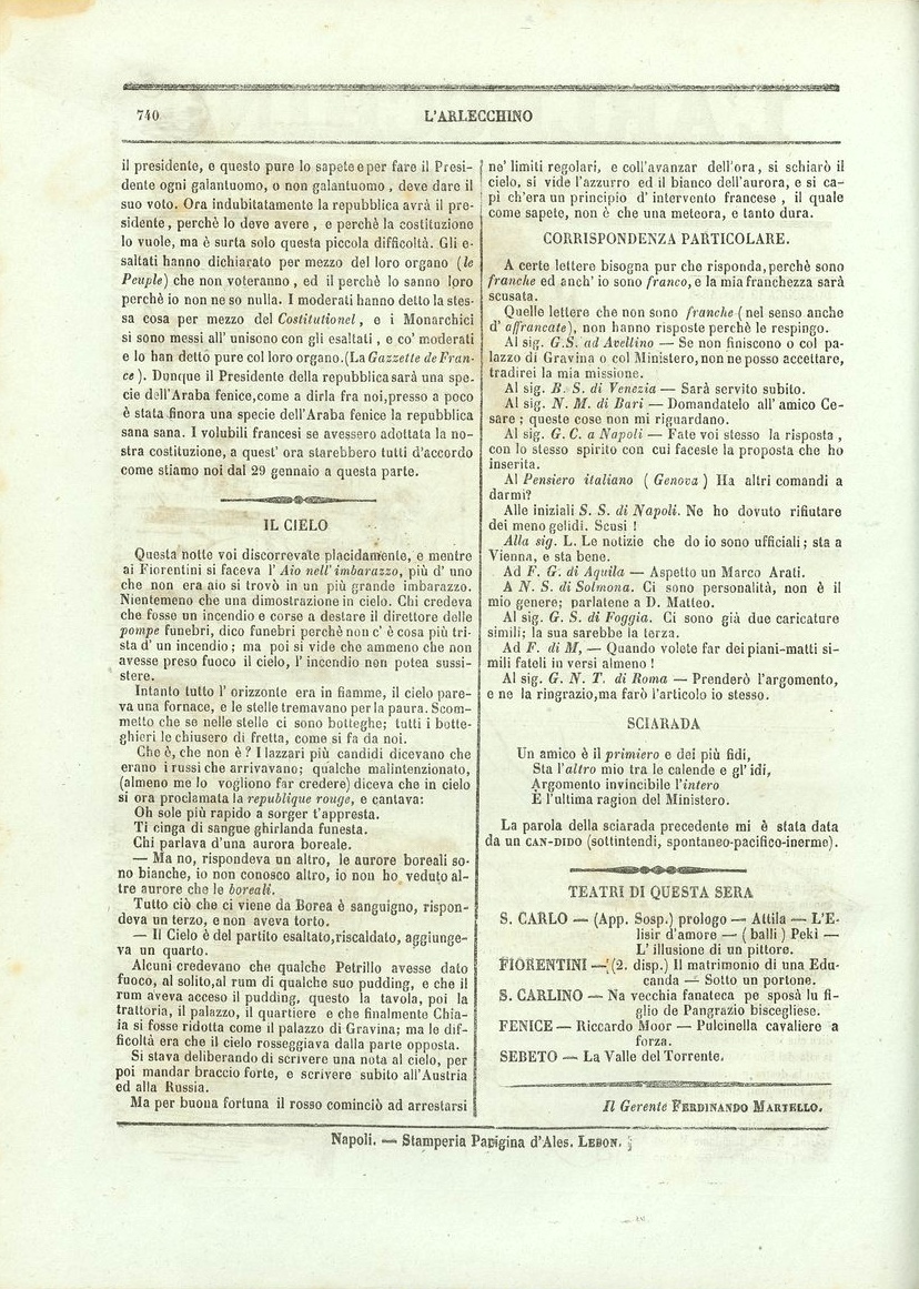 La satira napoletana accolse l’evento con estro comico: sulla rivista L’Arlecchino, l’aurora