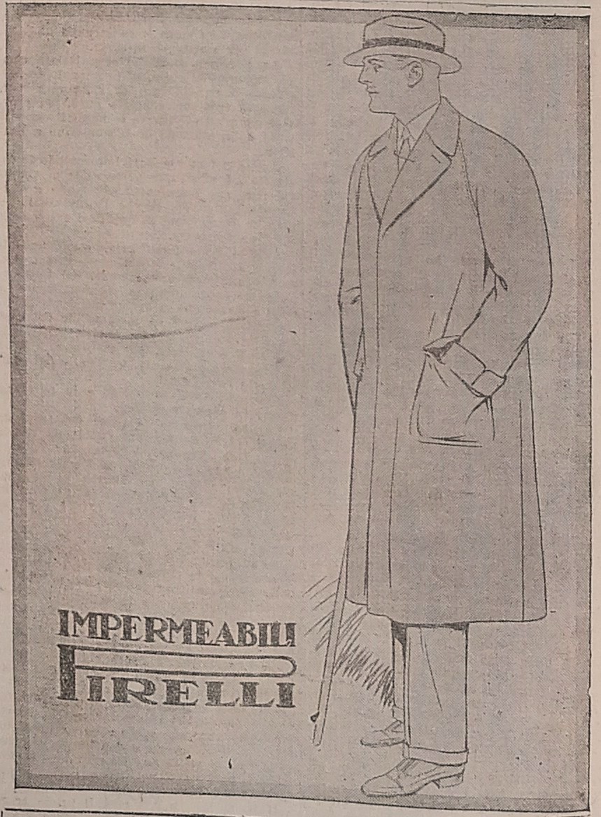 Impermeabili “Pirelli” in una pagina della Gazzetta di Puglia, 7 novembre 1926.Pubblicità