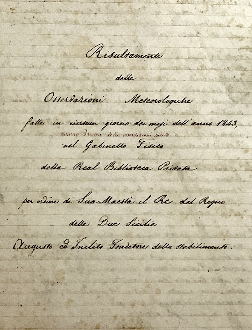 meteorologico, regolarmente condotta a Napoli nel Real Gabinetto Fisico dal 1842 al 1857. La