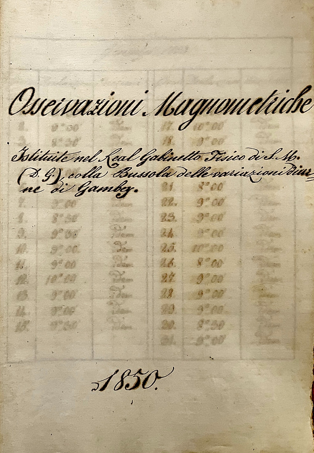 meteorologiche, condotte nel Reale Gabinetto Fisico, Archivio