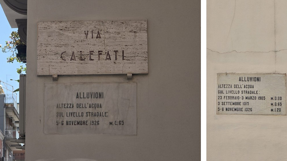 Le targhe delle alluvioni nel quartiere Libertà e Murat di Bari