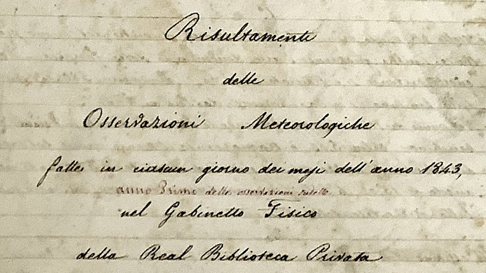 Risultamente delle osservazioni meteorologiche fatte in ciascun giorno dei mesi dell’anno 1843